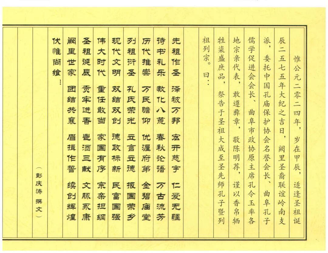 最后,全体参祭人员整理衣冠,庄严肃立,集体向先祖行三鞠躬礼。甲辰年孔子后裔纪念先祖诞辰2575年家祭大典圆满礼成。